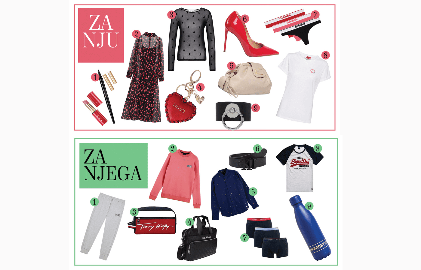 Diesel trenerka, Scotch&Soda duks, Tommy Hilfiger neseser, Replay torba za laptop, Scotch&Soda košulja, Calvin Klein kaiš, Tommy Hilfiger veš, Superdry majica, Superdry flaša za vodu