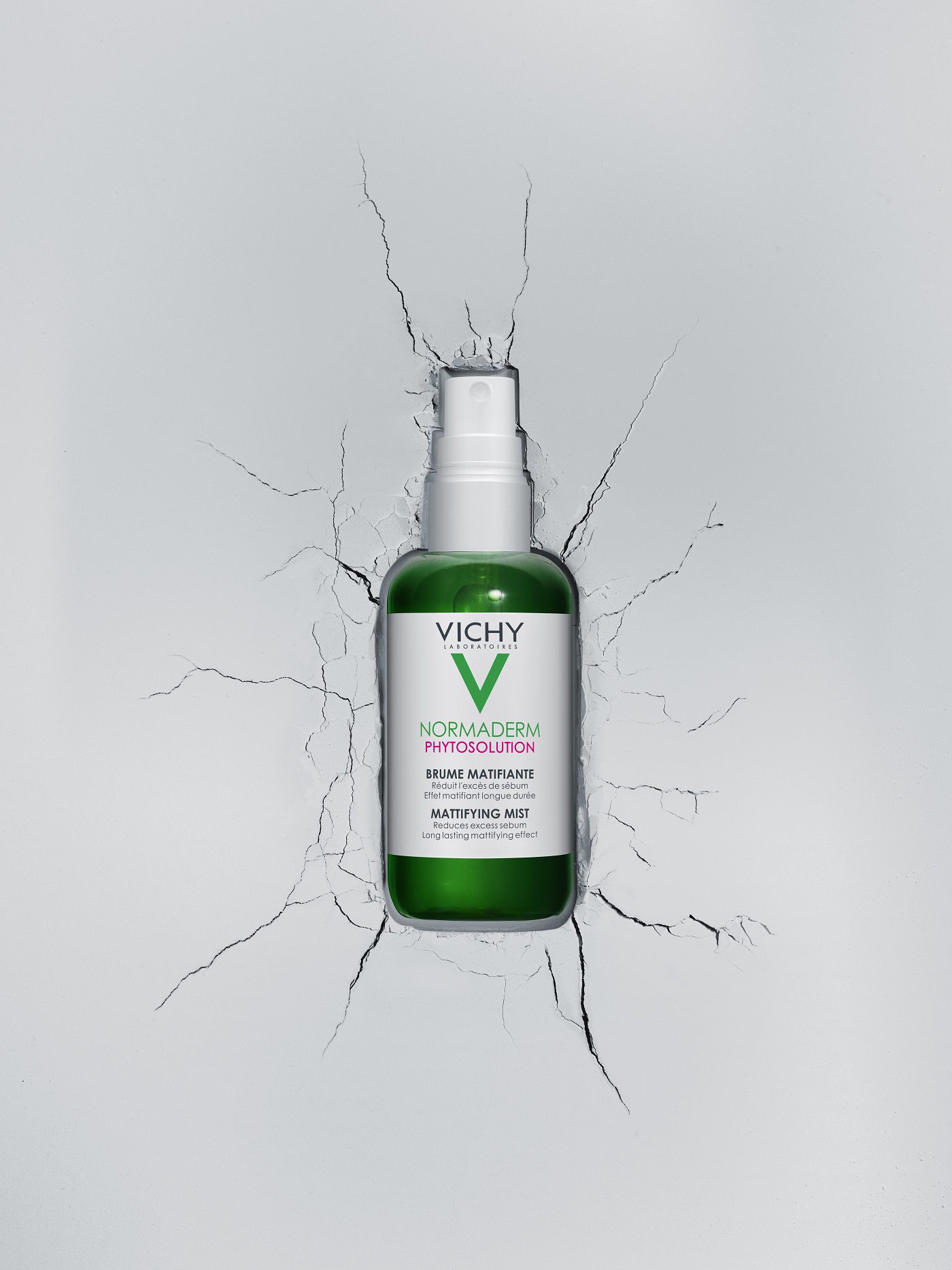 Nega masne kože ne treba da se završi jutarnjom negom zato što se lučenje sebuma povećava u toku dana. Žene najčešće pribegavaju matiranju lica maramicama ili kompaktnim puderom, međutim oni nemaju postojan učinak. Minimalistička formula prirodnog porekla sa samo 8 sastojaka u Phytosolution matirajućem spreju omogućava da koža bude matirana, ali i hidrirana i osvežena tokom dana. Aminokiselina smanjuje višak sebuma, dok Vichy vulkanska voda obogaćena sa 15 esencijalnih minerala jača njenu prirodnu odbranu.