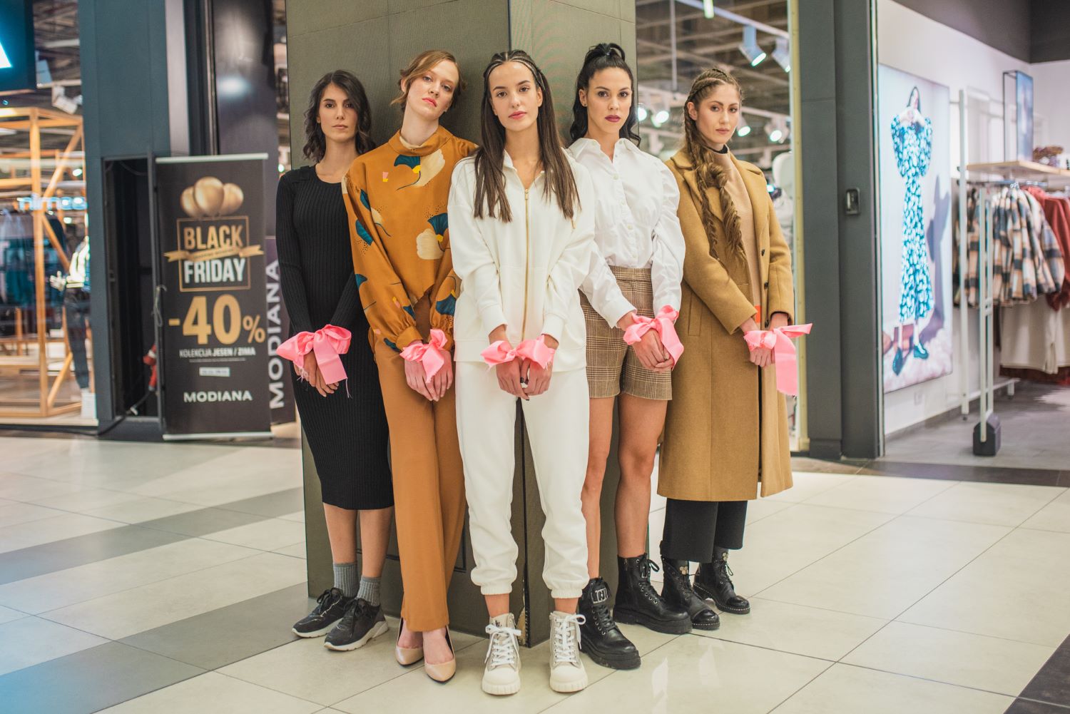 Ovogodišnji Belgrade Fashion Week imao je neobičan pristup – na pistu su „rame uz rame“ sa manekenkama izašle žene sa rukama vezanim roze trakama.