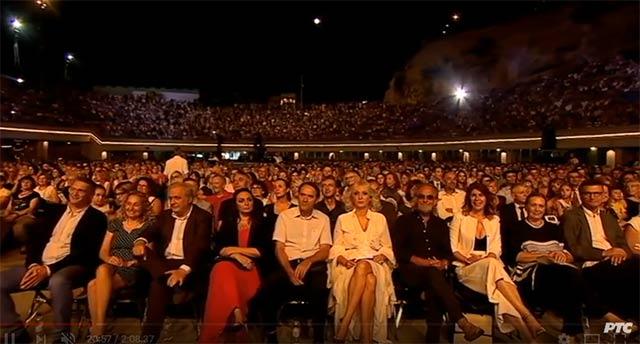 Međutim, interesantan je bio čuveni prvi red. Kada je ovakav događaj u pitanju očekivali bismo bar nekog ministra iz Vlade Srbije, možda premijerku, ako ne i predsednika. Kao što se vidi na ovoj slici pored Dragana Bujoševića i Olivere Kovačević nema nikog iz vrha aktuelne vlasti. Zašto bi bilo koji političar ispustio priliku „da se slika“ na verovatno najgledanijem programu te večeri? Bilo je i lepo veče, pun Tašmajdan, mogao je da mahne publici, pozdravi glasače, možda obeća nešto.