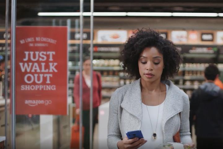 Kupci se preko aplikacije na pametnom telefonu čekiraju prilikom ulaska u objekat, a kamere i senzori prate šta uzimaju sa rafova. Artikli se direktno ubacuju u kese, a naplaćuju se preko Amazonovog računa po izlasku iz prodavnice.