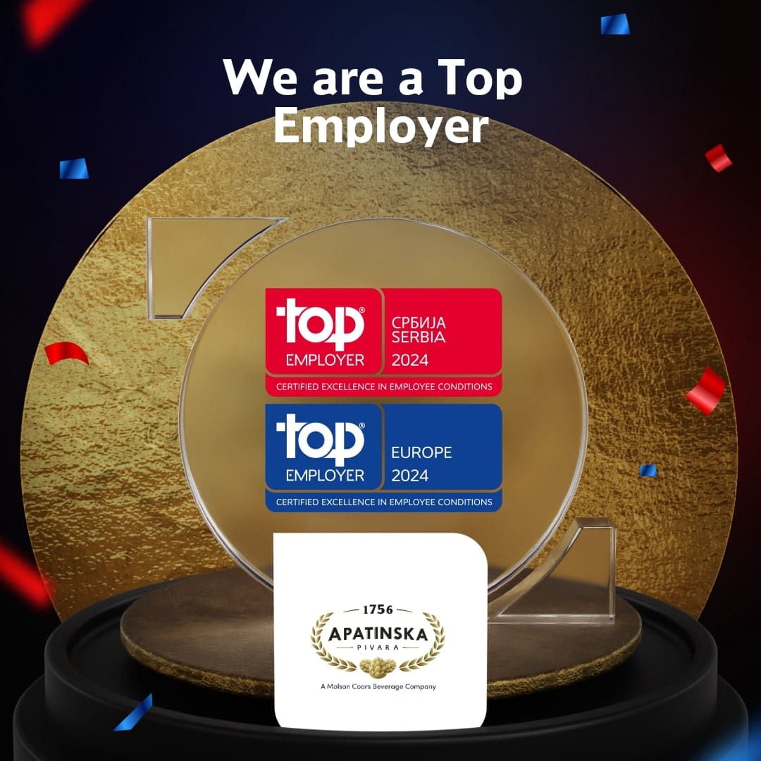 Apatinska pivara je po drugi put dobila dvostruku nagradu Instituta Top Employer, odnosno sertifikat „Top Employer Serbia” i „Top Employer Europe” čime se pridružila odabranoj grupi kompanija iz 122 zemlje sveta koje su nosioci ovog značajnog priznanja. Apatinska pivara je ovim priznanjima globalno priznata po svojoj izvrsnosti u praksi u odnosu sa zaposlenima.