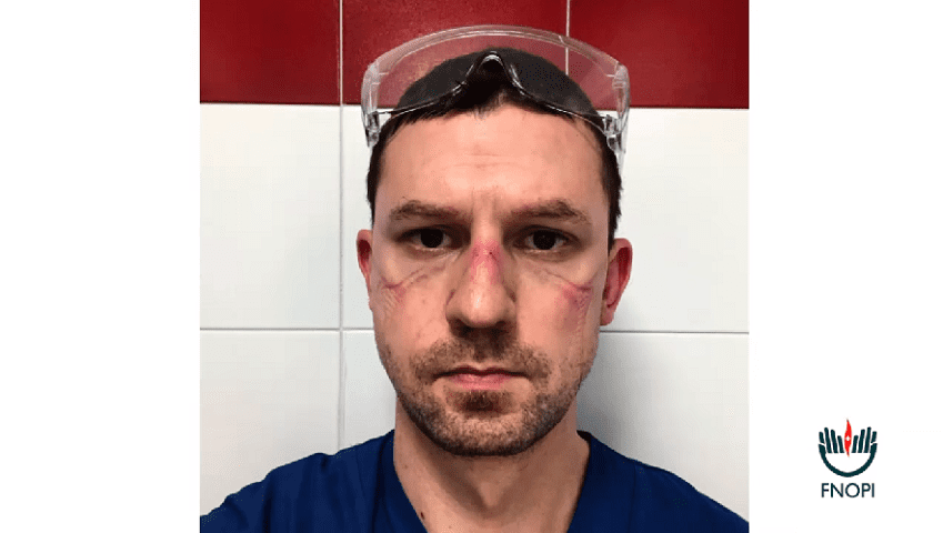 Snimak je načinjen od fotografija lekara i medicinskog osoblja koje su objavljivali na društvenim mrežama, sa podlivima na licu od dugog nošenja zaštitnih maski i naočara, prenosi N1.