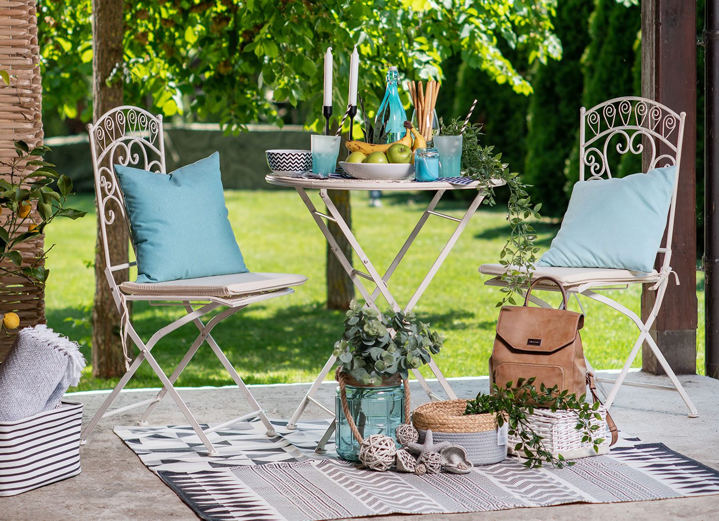Ukoliko ste ipak ljubitelj rustičnog stila, sjajan izbor za vaš kutak je baštenski set SEVILJA, koji čine dve stolice i sto metalne konstrukcije, a dodatno je praktičan zbog mogućnosti sklapanja i lakog odlaganja. Time štedite prostor, tako da je odlično rešenje i za male terase i balkone, ili odvojen kutak u okviru dvorišta. Kutak možete dodatno dekorisati prekrivačem DIAMOND, a sjajni detalji su i sveća u staklenoj posudi sa motivacionim natpisom činija za posluženje.