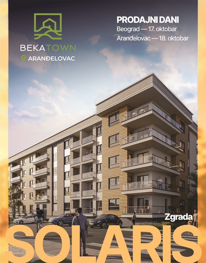 Pozivamo sve zainteresovane da nas posete 17. i 18. oktobra na prodajnim danima u Beogradu i Aranđelovcu i uvere se zašto je „Solaris” – nova zgrada na Promenadi – prava prilika da postanete deo „Bekatown” zajednice.