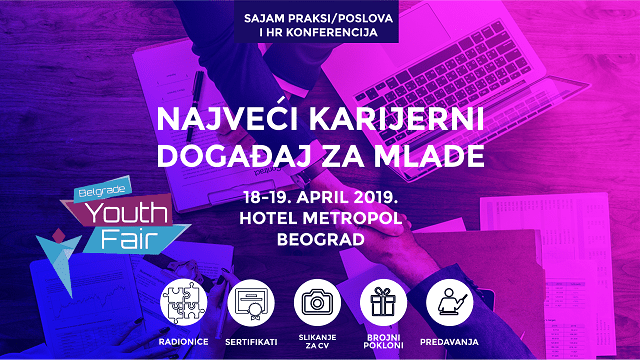 U Beogradu će se 18. i 19. aprila, u prostorijama hotela Metropol Palace, održati peti po redu Belgrade Youth Fair, najveći karijerni događaj u regionu, na kojem će mladi imati priliku da se povežu sa mnogobrojnim kompanijama i institucijama i tako sebi obezbede praksu ili zaposlenje, ali i steknu mnogobrojna znanja za koja će dobiti besplatan sertifikat. Program će oba dana trajati od 10 do 16 časova, a činiće ga sajamski i konferencijski deo.