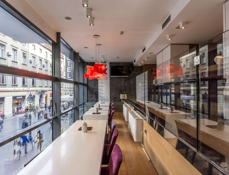 Restoran Mozaik nudi mediteransku ,kao i domaću kuhinju, pripremljenu od kvalitetnih proizvoda, dok bar služi jutarnje kafe i ukusne originalne belgijske vafle. Hotelski konferencijski centar sastoji se od dve prostorije smeštene na prvom i devetom spratu sa prirodnim osvetljenjem i klimom. Prostor na poslednjem spratu prima 90 gostiju, ima izlaz na terasu sa pogledom  na Stari grad, I namnenjen je za održavanje raznovrsnih sastanaka i okupljanja.