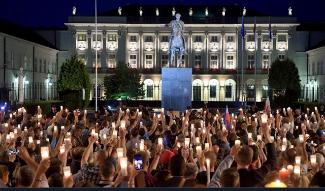 U najnovijoj anketi za poljsku televiziju TVN24 55 odsto Poljaka zahteva od predsednika Dude, kao i desetine hiljada Poljaka koji svake večeri izlaze pred Predsedničku palatu u Varšavi i pred zgrade sudova u 80 gradova i gradića širom zemlje sa zapaljenim svećama u živom lancu svetla, da stavi veto na sva tri zakona reforme pravosuđa.