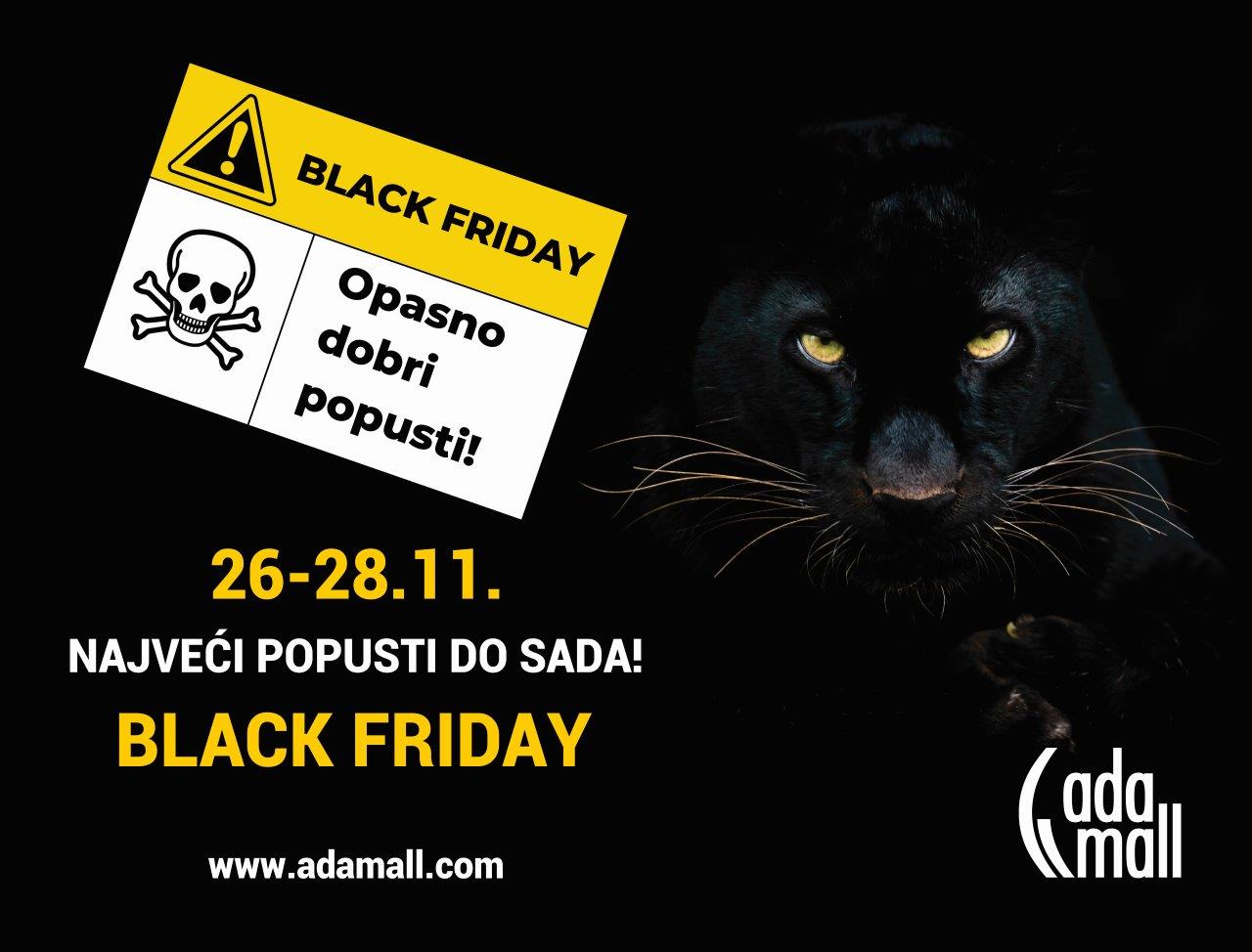 Zagrevanje za prednovogodišnju šoping euforiju, poznatiju kao BLACK FRIDAY, ove godine poprima sasvim novu dimenziju. Od 26. do 28. novembra u ADA MALL-u moći ćete da uživate u opasno dobrim popustima do 70%.