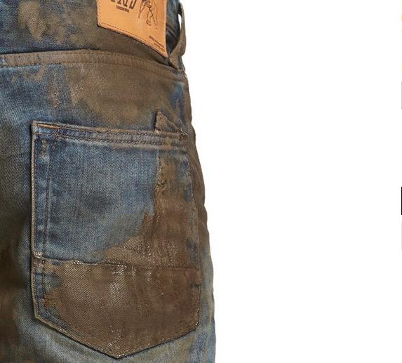 Farmerke su izdanak modne kuće PRPS koja u svojoj ponudi ima i blatnjavu jaknu. I pored nanosa lažne prljavštine farmerke mogu da se peru u mašini, na deklaraciji se preporučuje hladno pranje, a ’prljavština’ se neće isprati.