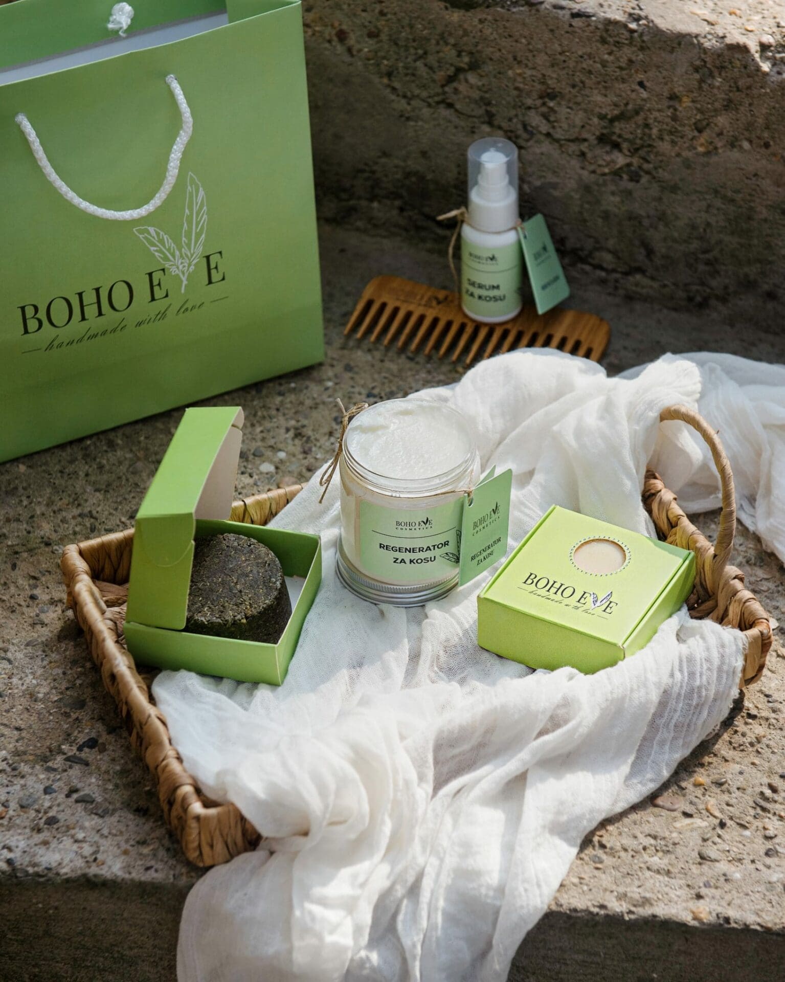 „BohoEve“ kozmetika pored ručno rađenih sapuna, od kojih je sve i počelo, poseduje prošireni asortiman proizvoda poput body butter, losiona za telo, krema za ruke, preparata za kosu, kompleta za leto…