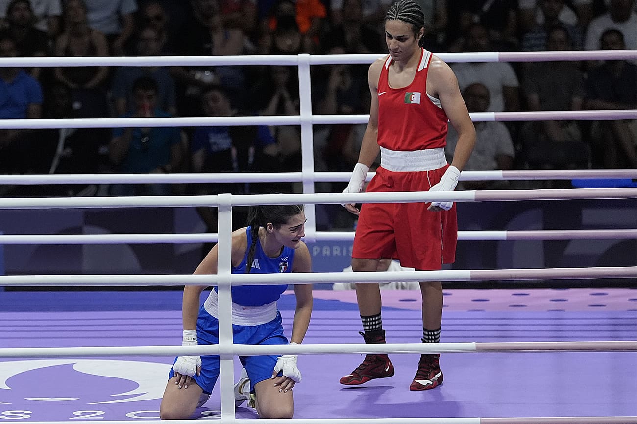 Međutim, obe imaju pravo da učestvuju na Olimpijskim igrama u Parizu. Helif je slavila protiv Italijanke Karini koja je predala meč posle 46 sekundi.