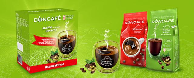 Stigao je idealan poklon za sve one koji već imaju zdrave navike i sve one koji žele da i njihovi najbliži počnu sa pozitivnim odlukama! Doncafé Green active kafa sa 30% više prirodnih antioksidanasa je idealan izbor, jer su antioksidansi važna jedinjenja koja se bore za očuvanje zdravlja našeg organizma. Uz isti ukus domaće kafe, Green active vam pruža dobar osećaj i pomaže da ostanete puni energije tokom celog dana. Doncafé Green active kafa i Doncafé Moment, najbolja su kombinacija za svaki vaš aktivan i važan momenat!