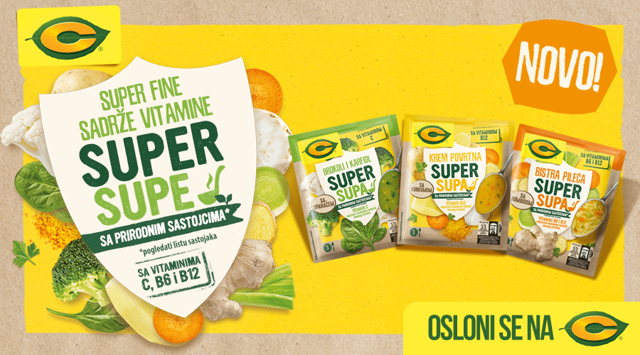 Živimo u vremenu kada je briga o imuniteta prioritet, a unos vitamina deo naše svakodnevnice. U želji da svojim potrošačima ponudi proizvod koji je obogaćen vitaminima i sadrži prirodne sastojke, kompanija Nestle proširila je asortiman supa C brenda. Pored dobro poznatih ukusa, C Supe od sada dolaze i u tri nova ukusa – krem C Super Supa od brokolija, karfiola i spanaća sa dodatkom vitamina C, osvežavajuća krem C Super Supa od povrća sa dodatkom kurkume i vitaminom B12 i bistra pileća C Super Supa sa dodatkom đumbira i vitaminima B6 i B12.
