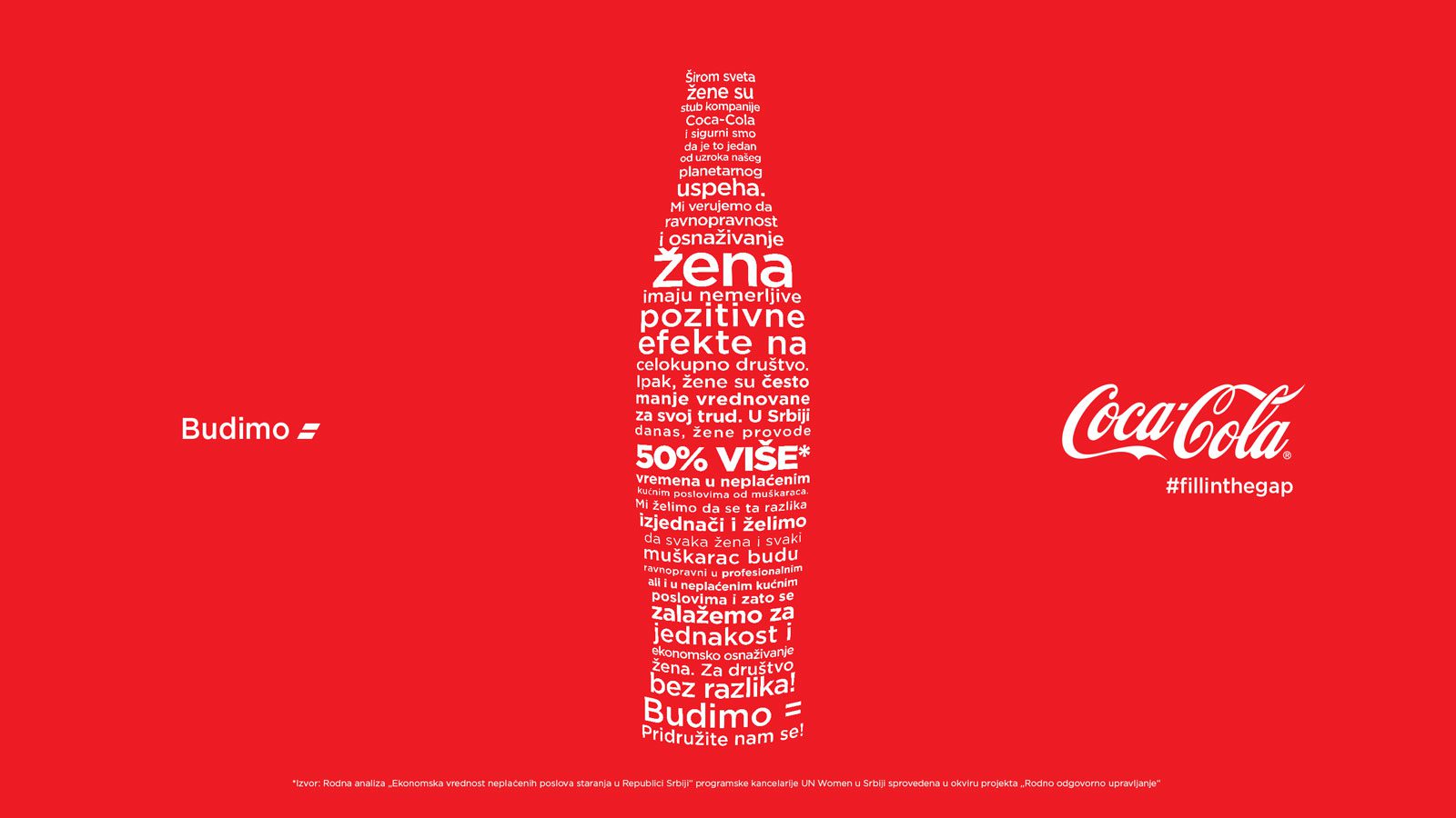 Kao odgovorna kompanija, Coca-Cola je prošle godine pokrenula kampanju „Budimo =“ sa ciljem podizanja svesti o razlikama u ekonomskim primanjima muškaraca i žena.