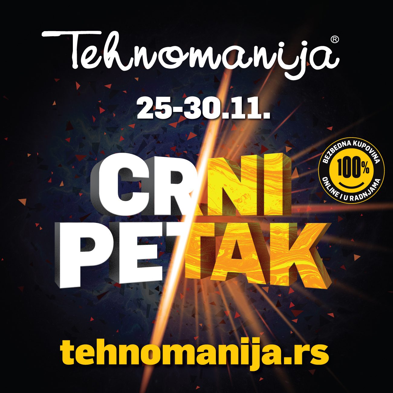 Kupci će za Crni petak u Tehnomaniji imati priliku da artikle razgledaju duže i pažljivije razmisle o svom izboru, jer je trajanje Crnog petka produženo na nekoliko dana. Od 25. do 30. novembra u svim radnjama i online prodavnici Tehnomanije za kupce je pripremljena sjajna ponuda različitih kategorija artikala, osmišljena tako da svako pronađe za sebe ponešto. U prodavnicama su preduzete sve propisane preventivne mere zaštite, a potrošače čekaju i besplatne zaštitne maske.