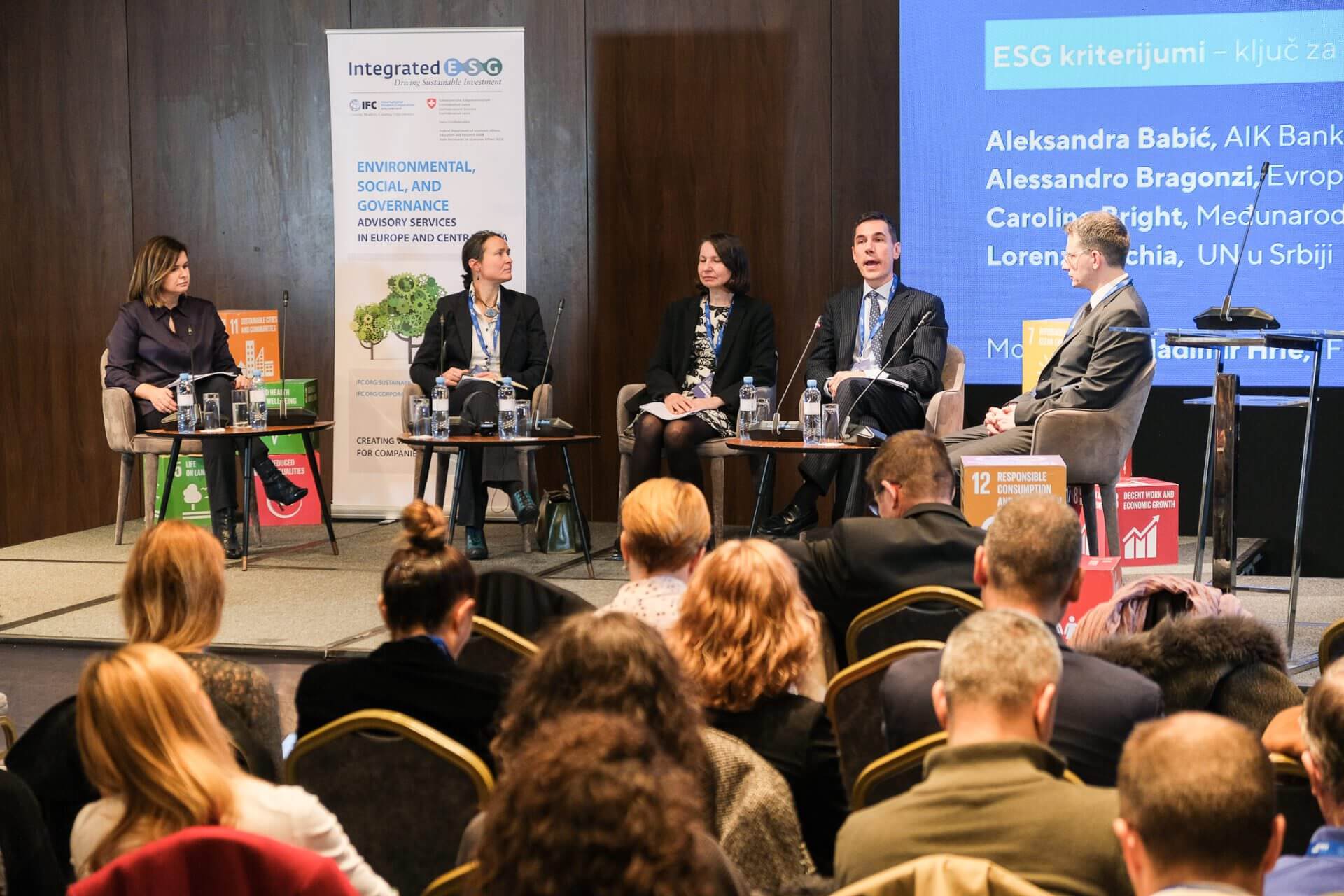 Glavna sesija na događaju posvećena ESG kriterijumima, pokrenula je pitanje na koji način poslovanje u skladu sa kriterijumima koji se tiču životne sredine, socijalnih pitanja i upravljanja postaje realnost za kompanije u Srbiji, ali i uslov za pristup tržištima kapitala.