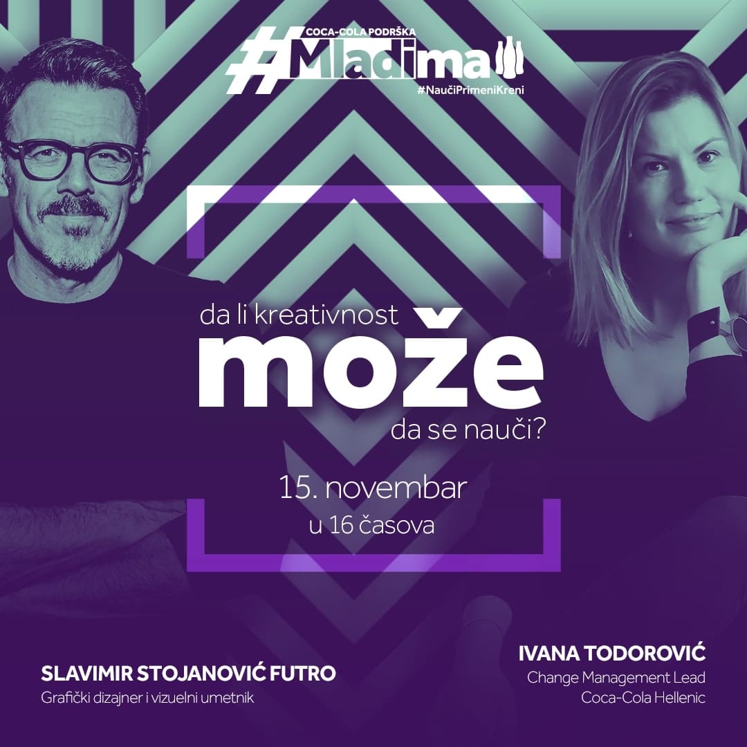 Pored njega, savete i tehnike za razvijanje kreativnosti predstaviće Ivana Todorović, Change Management Lead u Coca-Cola HBC Grupi, koja ima više od 15 godina iskustva u oblasti komunikacija i marketinga. Izučavajući kreativnost, Ivana je osmislila Smišljalice – onlajn Instagram platformu i društvenu igru za decu, koja razvija maštu i unapređuje izražavanje i pisanje na zabavan način.