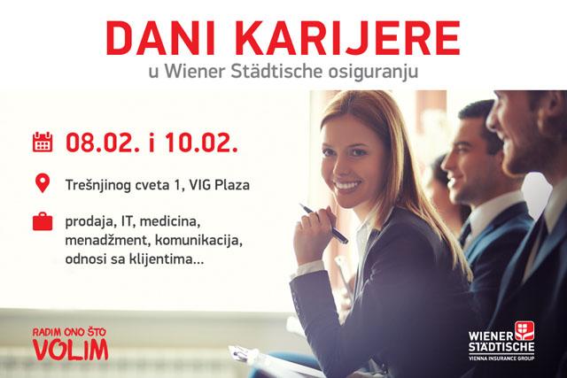 U četvrtak 08. februara i u subotu 10. februara u prizemlju poslovne zgrade VIG Plaza održaće se prvi „Dani karijere u Wiener Städtische osiguranju“.