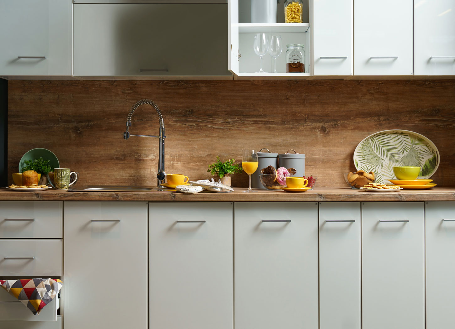 Sa dolaskom proleća, dolaze i nove ideje za uređenje doma i dodavanje novih detalja u tom duhu. Ukoliko želite da menjate i uređujete kuhinju, sjajan izbor može biti kuhinja PROWANSJA, sa belim frontovima i radnom pločom u teksturi zlatnog hrasta, koja predstavlja jedan idealni kutak rustičnog stila. Veliki izbor zatvorenih i otvorenih gornjih i donjih elemenata, doprineće funkcionalnom uklapanju kolekcije u prostorije različitih dimenzija i stvoriti pravu kulinarsku bajku u vašem domu.