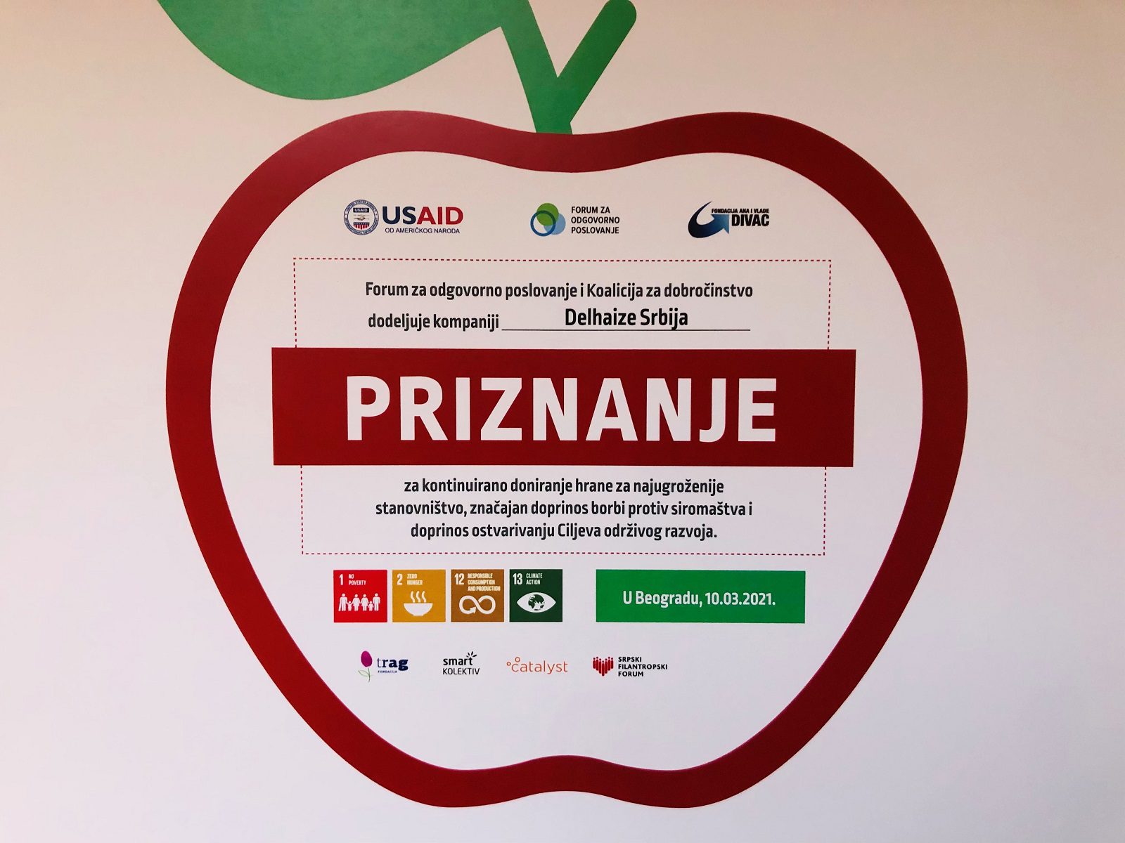 Delez Srbija dobitnik priznanja za doniranje hrane