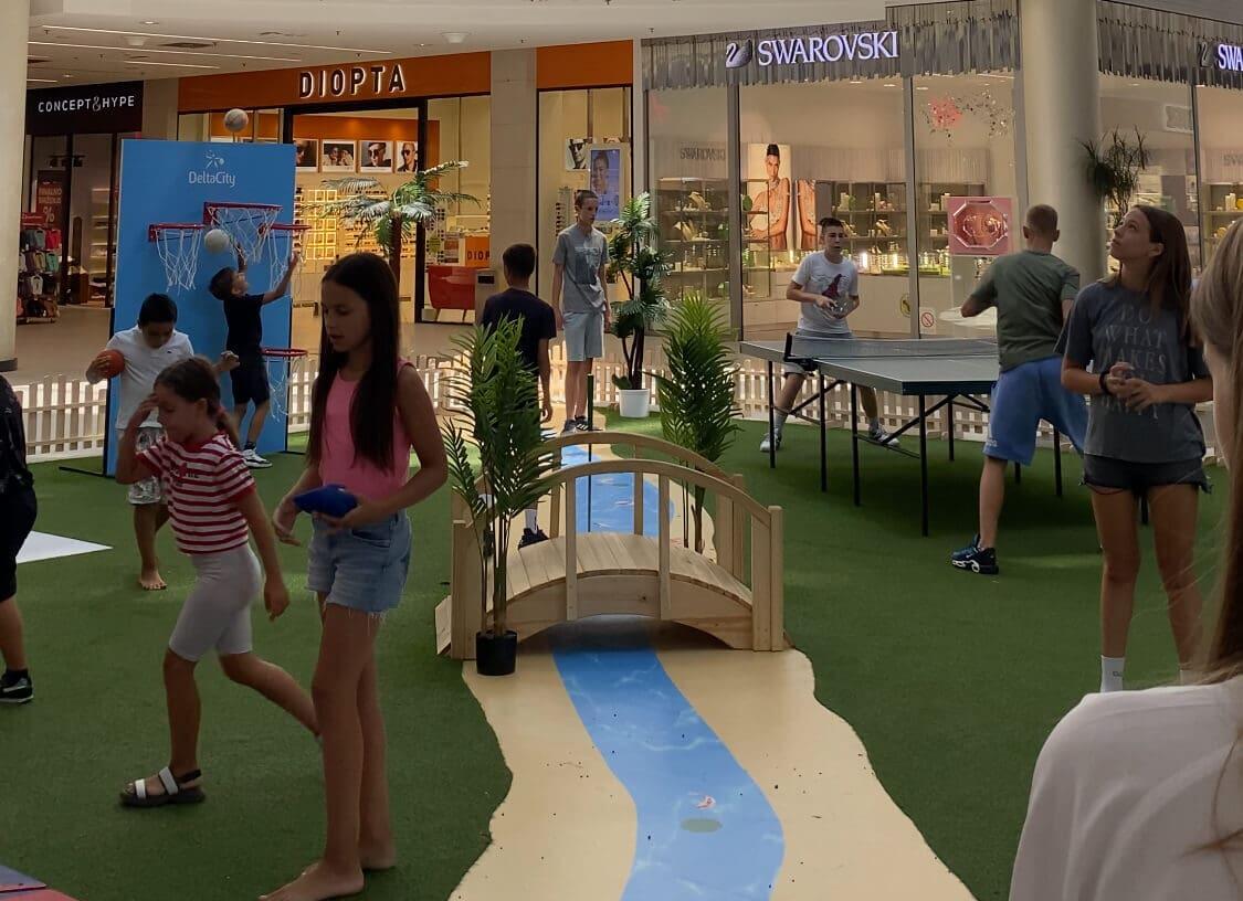 Ovog leta, Delta City je pokrenuo jedinstven projekat pod nazivom „Sportsko leto,“ koji traje od 15. jula do 31. avgusta. U skladu sa temom Olimpijskih igara koje su iza nas, najmlađi posetioci imaju priliku da se oprobaju u različitim sportskim disciplinama poput stonog tenisa, golfa, skoka udalj, košarke i popularnog cornhole-a.