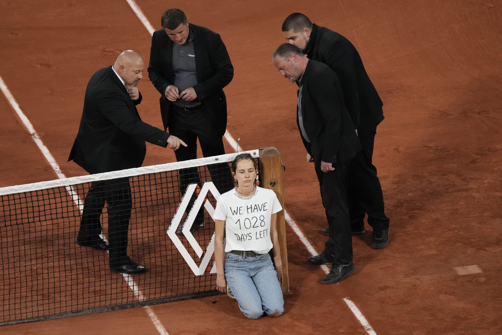 Meč je prekinula ekološka aktivistkinja koja je nosila majicu sa porukom „Ostalo nam je još 1028 dana“, a koja se odnosi na globalno zagrevanje planete.