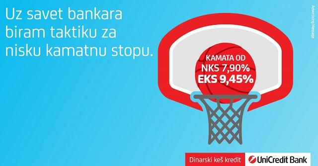 Dinarski keš kredit UniCredit Banke se odobrava svim postojećim i novim, zaposlenim klijentima koji prenesu zaradu u ovu banku, bez učešća i depozita, a može se iskoristiti i za refinansiranje postojećih obaveza. Dodatna pogodnost je osiguranje koje je već uključeno u cenu kredita i koje pokriva široku paletu rizika, uključujući i osiguranje u slučaju gubitka posla.