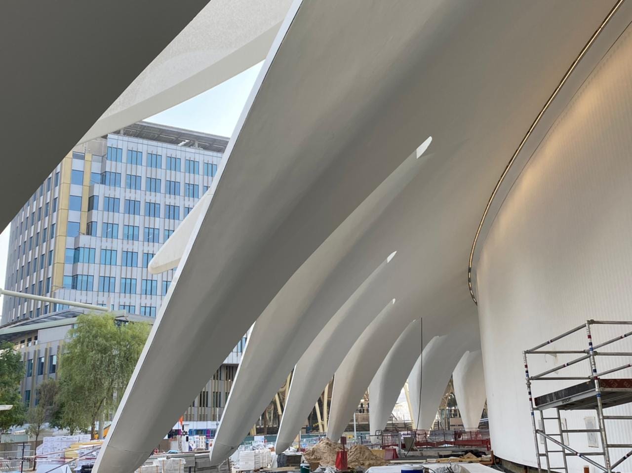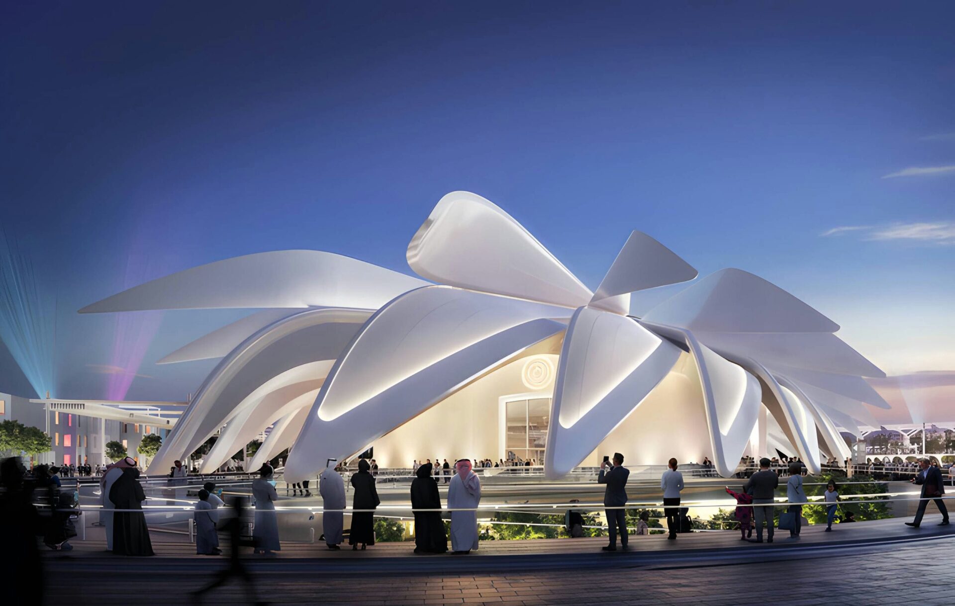 Dizajn paviljona je inspiran vizijom sokola, nacionalne ptice UAE, i odražava identitet i pionirski duh ove zemlje, negujući ravnotežu i vezu između prošlosti, sadašnjosti i budućnosti. Bilo je izazovno napraviti kompleksnu sfernu kupolu za šest nedelja, a na projektu površine 15.000m² postojala je minimalna količina otpada.