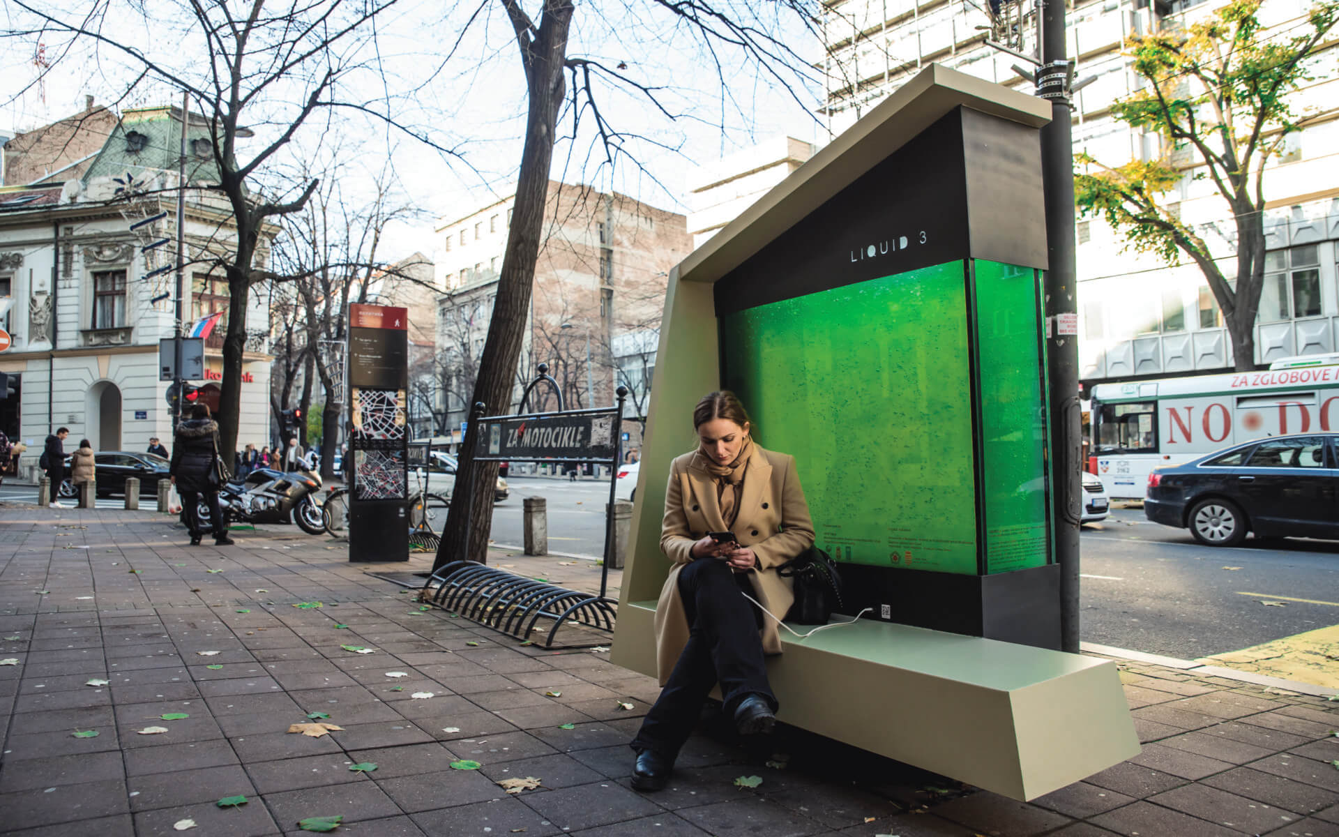 Prvi urbani foto-bioreaktor u Srbiji – Liquid 3, postavljen je prošle godine ispred zgrade Opštine Stari grad u Beogradu. Kao jedinstvena fuzija dizajna, biologije i biotehnologije nagrađen je za najbolju inovaciju i podržan zajedno sa još 10 inovativnih i klimatski pametnih rešenja u okviru projekta Lokalni razvoj otporan na klimatske promene, koji je sproveo Program Ujedinjenih nacija za razvoj (UNDP) u partnerstvu sa Ministarstvom zaštite životne sredine, uz finansijsku podršku Globalnog fonda za životnu sredinu (GEF).