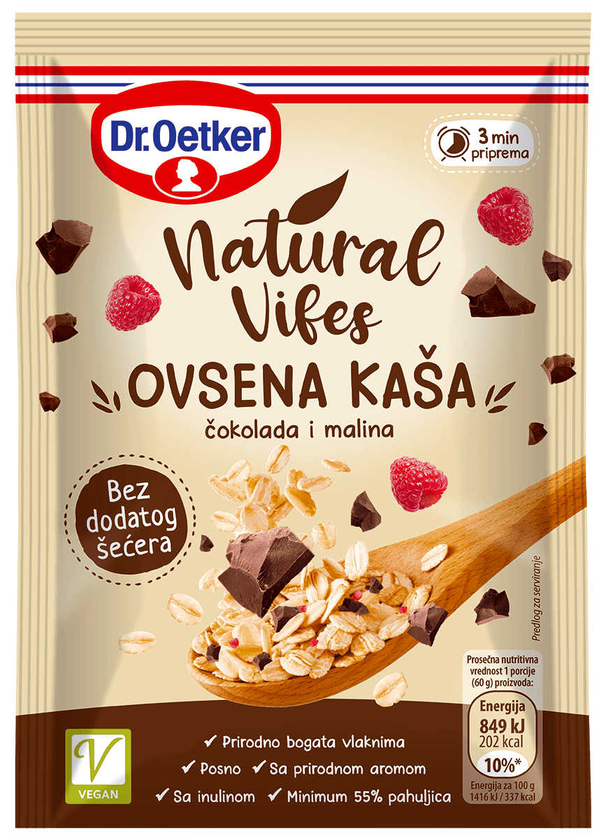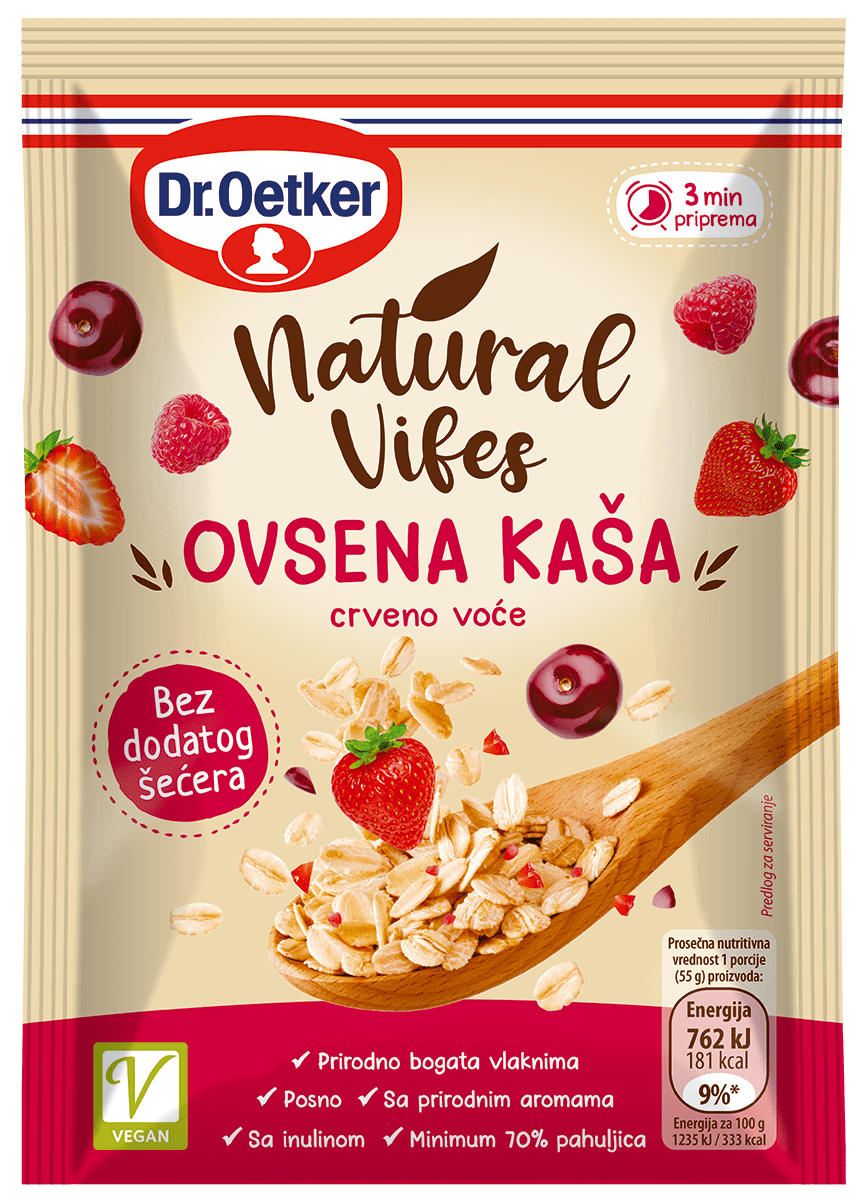 Natural Vibes je nova Dr. Oetker linija proizvoda bez dodatog šećera, koja donosi vedrinu tokom celog dana uz jednostavno kontrolisanje unosa kalorija. Ovu prirodniju liniju čine mafini, organski kakao prah, ovsene pahuljice i ovsene kaše u tri omiljena ukusa.