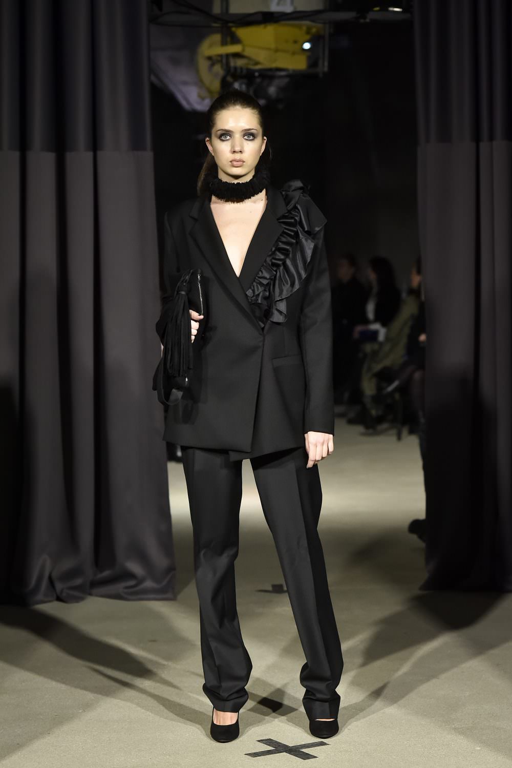 Na reviji smo videli 40tak modnih kombinacija, sve u potpuno crnoj boji. Dominirali su višeslojni outfiti sa dugačkim mantilima/kaputima, često i do samog poda. Posebnu pažnju su izazvale torbe koje su manekenke praktično prigrlile uz svoje modele i na taj način istakle posebnu vrednost Draganinih aksesoara. Pored jedinstvene i vrlo autentične linije DO modela, pojavili su se i detalji u vidu latica ili listova na ramenima, kragnama, ali i na obući i torbama. Saznali smo da su to zapravo reciklirani materijali starih kolekcija te se na ovaj način i Dragana priklanja sve važnijem trendu održive mode. Neizbežne su bile i vrlo elegantne i svedene haljine koje su upotpunile utisak ove sjajne kolekcije.