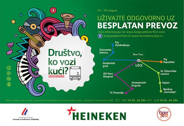 Za ljubitelje piva i dobre muzike, kompanija HEINEKEN Srbija i ove godine je organizovala besplatan prevoz tokom Belgrade Beer Festa kroz tradicionalnu akciju „Društvo, ko vozi kući?“.