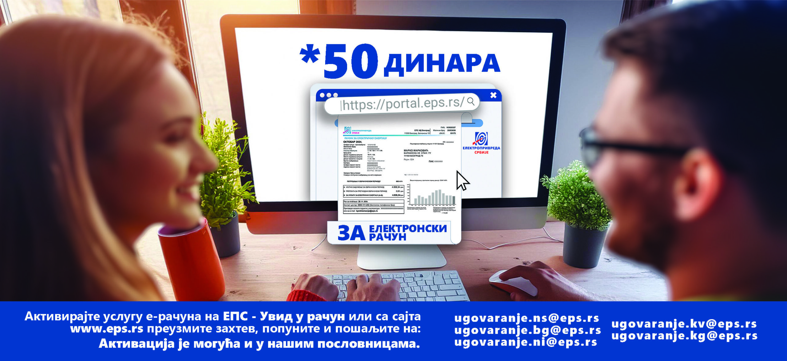 Broj građana koji su se opredelili da dobijaju isključivo elektronski račun povećava se iz dana u dan, te je očigledno da su građani prepoznali prednosti ove usluge i sada umesto u poštansko sanduče račun za električnu energiju dobijaju putem elektronske pošte. Prelazak na elektronski račun je jednostavan i brz, štedi novac, vreme i doprinosi očuvanju planete. Štedi se i papir, takvi računi stižu u veoma kratkom roku, a nema ni čekanja na dostavu računa.