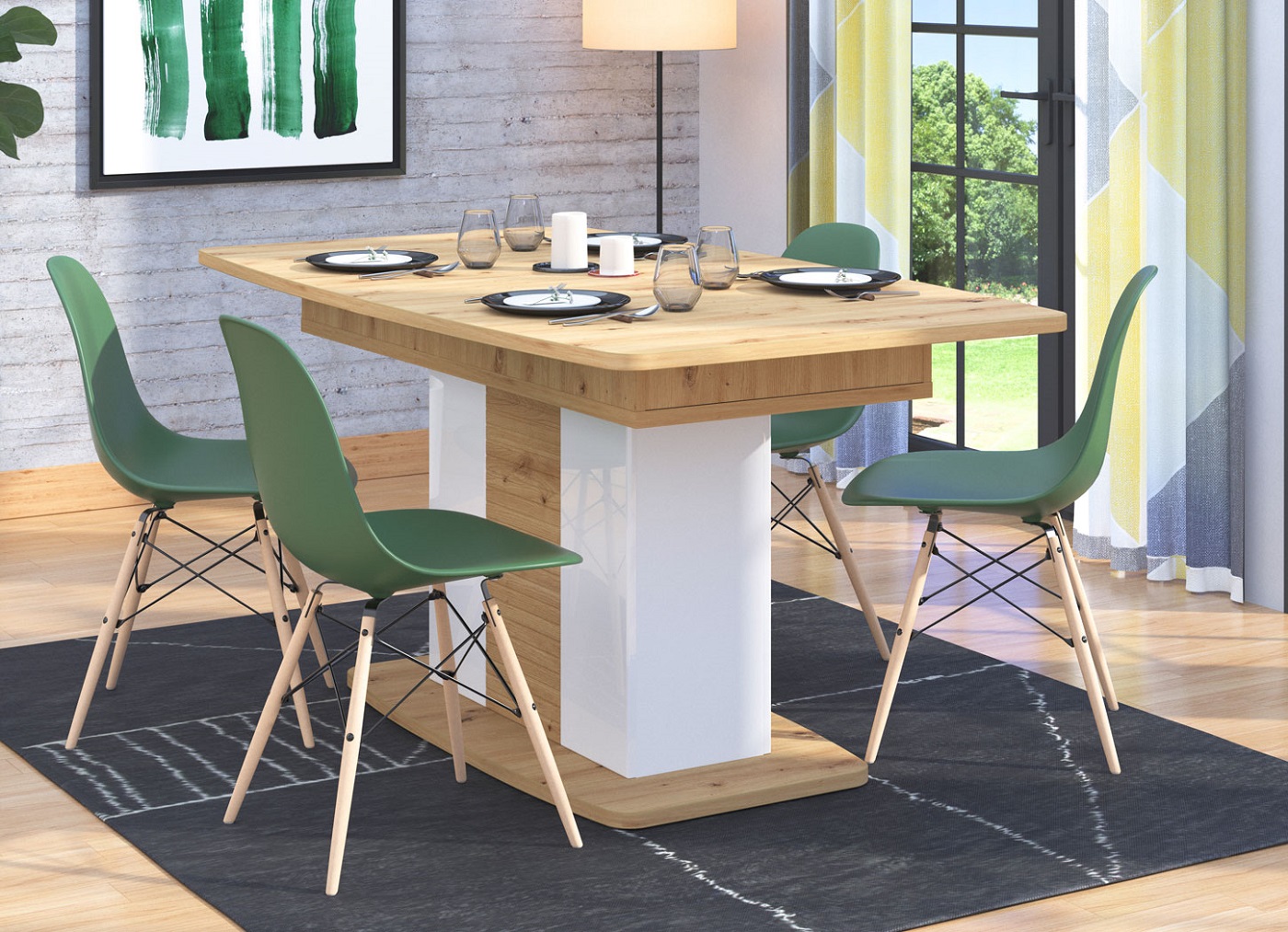 Dodatak sistemu elemenata je i trpezarijski sto BRETAGNA, koji je sjajan funkcionalni dodatak za otvorene prostore, kada su prostorno povezane dnevna soba i trpezarija, što doprinosi njihovoj ujednačenoj dizajnerskoj liniji. Postoji i mogućnost sinhronog razvlačenja stola sa leptir mehanizmom, pa je zato idealan za okupljanja većeg društva.