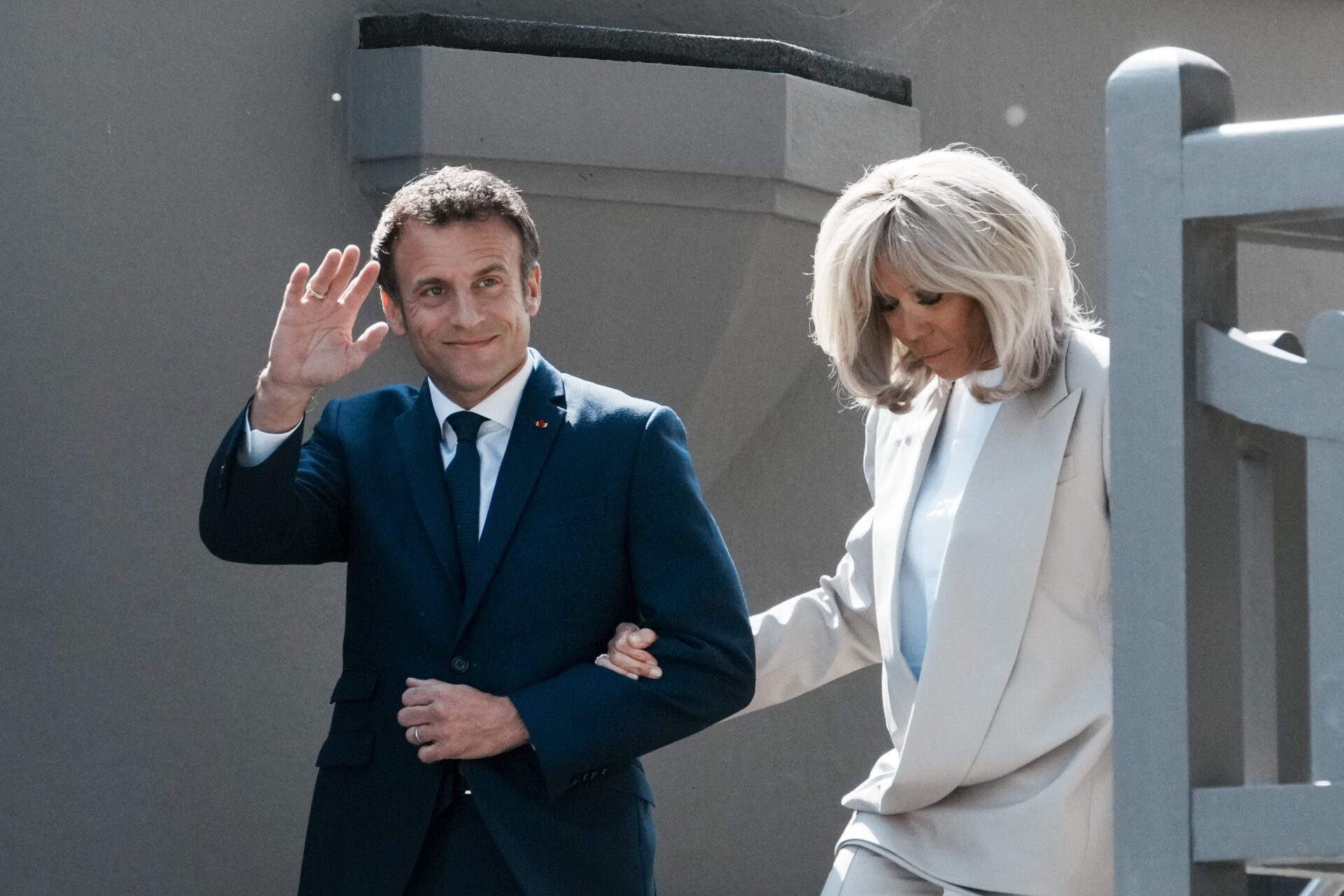 French President and centrist candidate Emmanuel Macron and French first lady Brigitte Macron (AP Photo/Thibault Camus)