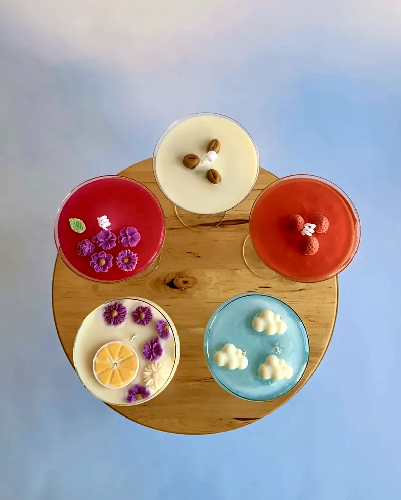U maju ove godine postavljena je prva kolekcija sveća inspirisana hladnim kafama, ali je ubrzo najavljena koktel kolekcija. ,,Prvenac je bio Espresso Martini,“ objašnjava Milica, „pošto je to po meni najpopularniji koktel koji sam uspela da “iskopiram”. Ostali dizajni su moji, što me čini baš ponosnom jer vidim da se i devojkama dopadaju. Počela sam kolekciju sa pet sveća, pa kasnije proširila u zavisnosti od potražnje. Mislila sam da ću neki dizajn kad tad ukinuti i da se neće svakome dopasti, ali bas suprotno, skoro svaki je pronašao svoju publiku. Gledala sam da to budu prave letnje boje, žuta, crvena, narandžasta i odatle sam posle pravila koncept za svaki koktel.’’