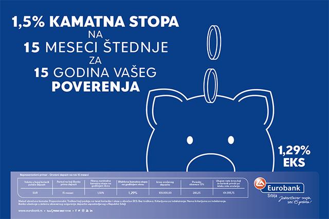 Eurobank štednja „15 za 15“ povodom jubileja poslovanja