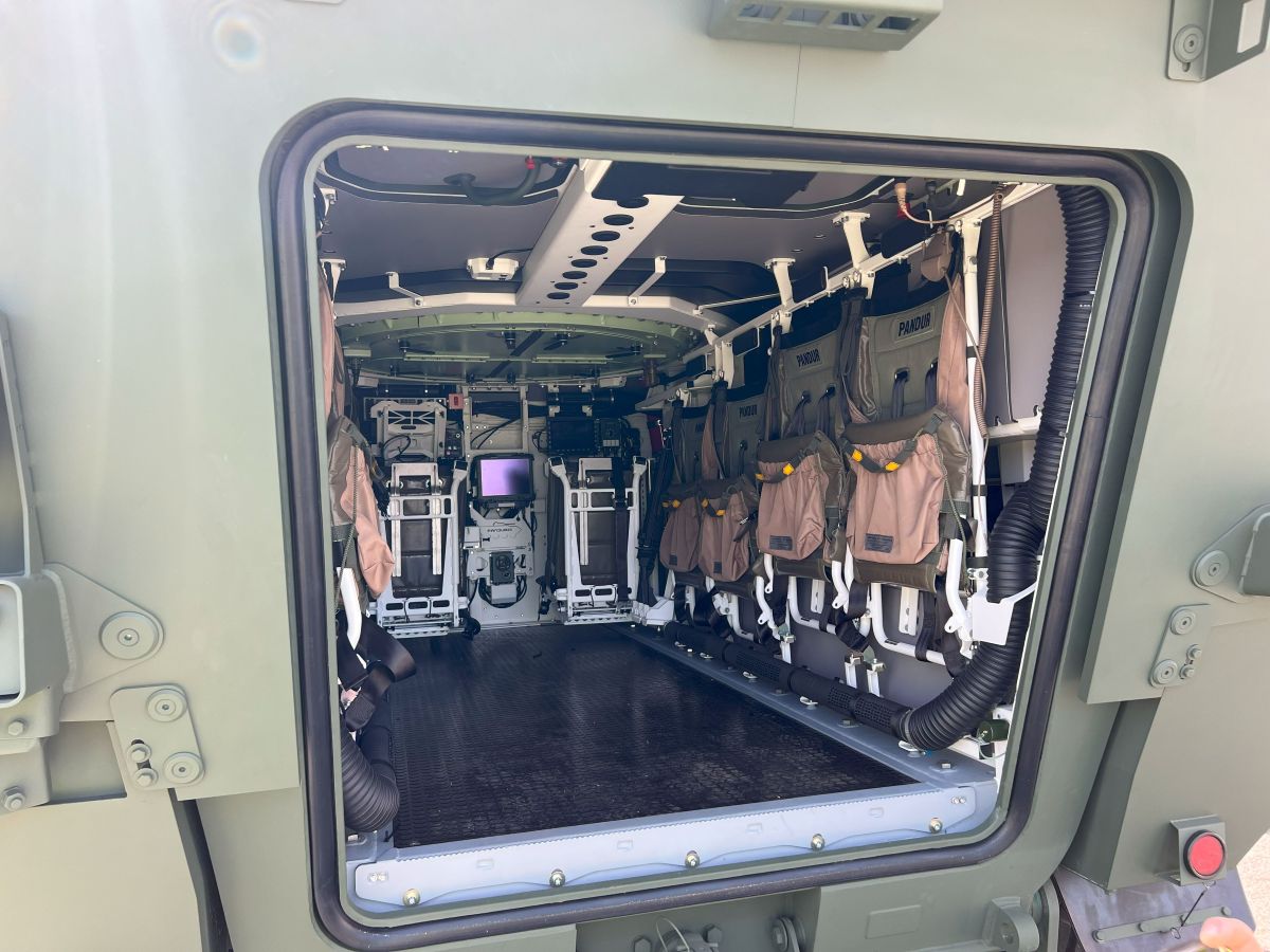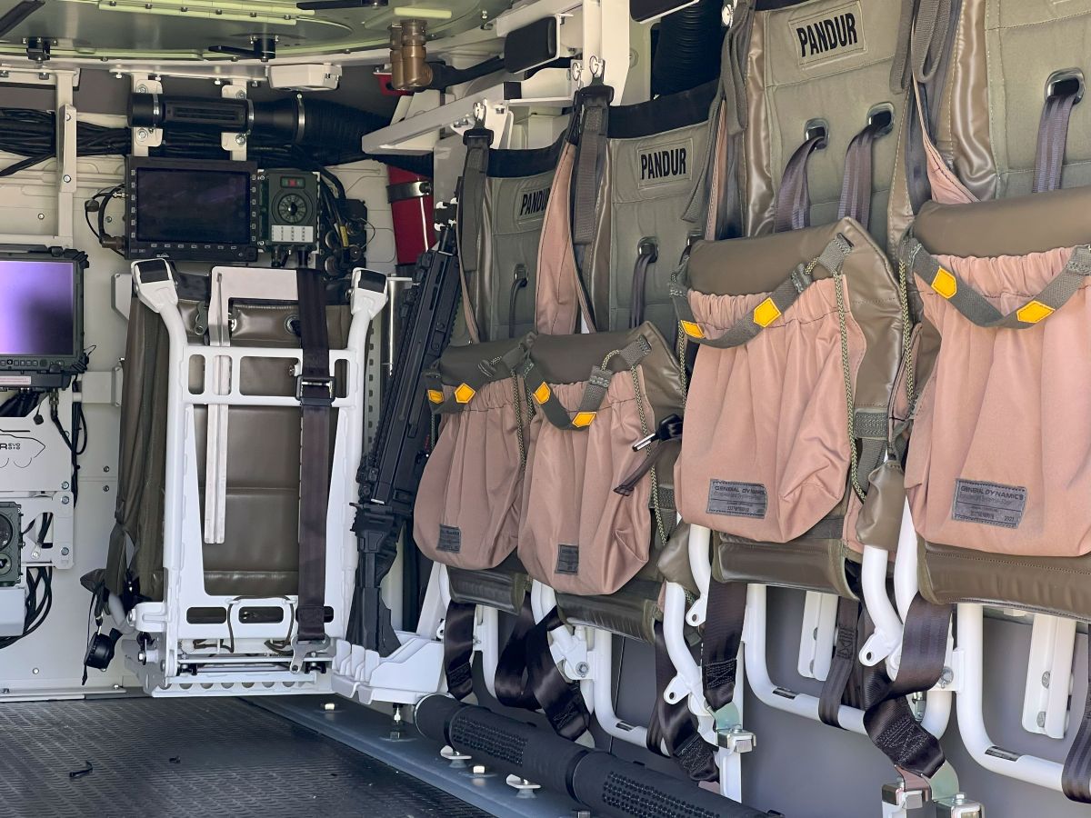 Poseban akcenat tokom posete bio je stavljen na oklopno vozilo Pandur II 8×8 EVO, koje proizvodi sestrinska kompanija Tatra Defence Vehicle. Pandur predstavlja novu generaciju modularnih borbenih vozila koja mogu biti konfigurisana za različite namene – od transporta pešadije do komandnih i sanitetskih verzija. Vozilo je opremljeno savremenim sistemima zaštite, balističkom otpornošću visokog nivoa i mogućnošću integracije borbenih stanica sa daljinskim upravljanjem. Svoju prezentaciju imalo je na sajmu IDET 2025, što potvrđuje značaj koji mu CSG pridaje kao delu buduće ponude na međunarodnim tržištima.