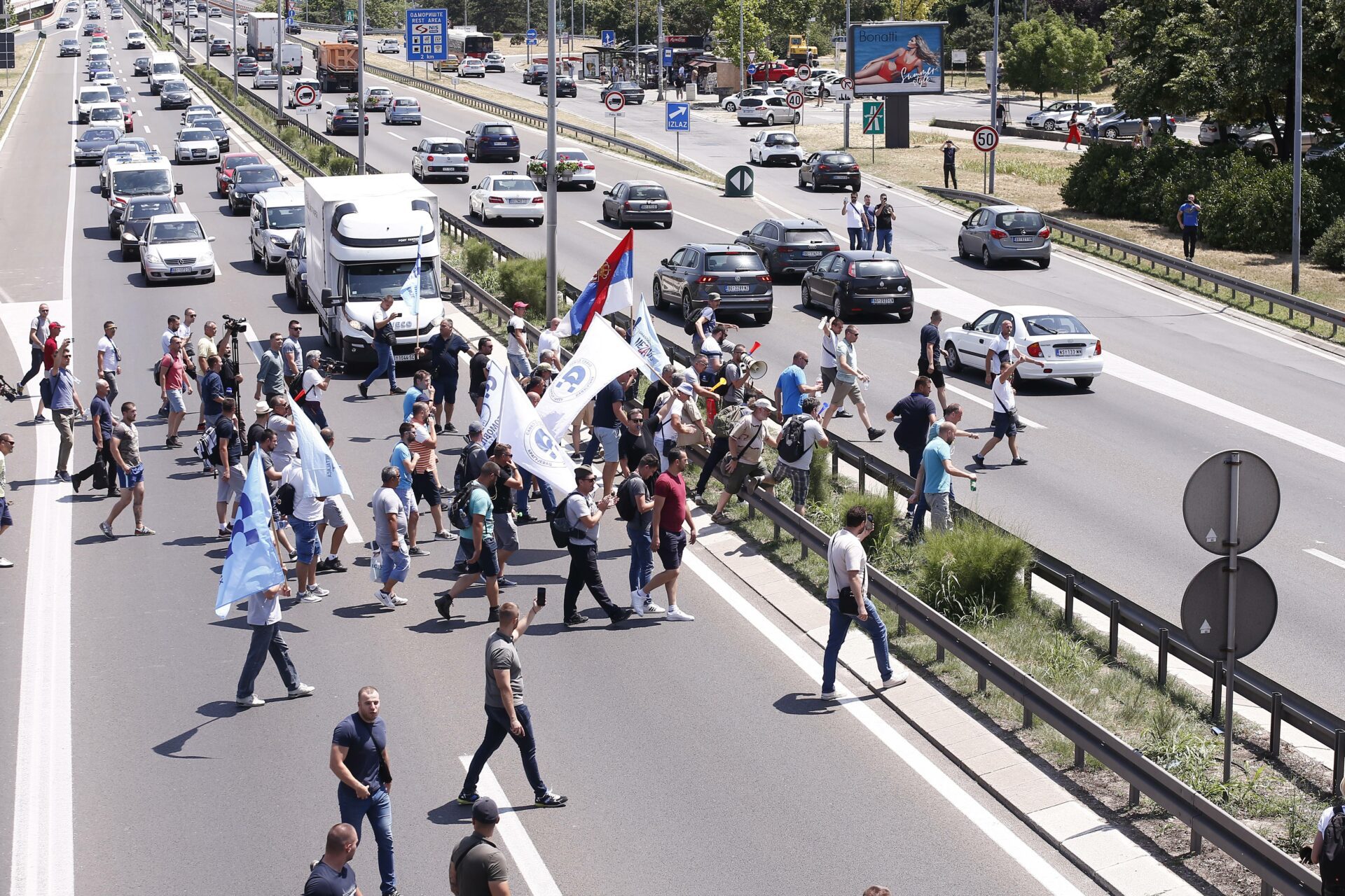 Beograd, 22.06.2022. – Nekoliko stotina radnika kragujevacke fabrike automobila Fijat blokiralo je nesto posle 13 casova deo autoputa kroz Beograd, kod Sava centra, trazeci od Vlade Srbije resenje za probleme koje imaju sa tom italijanskom firmom. (BETAPHOTO/AMIR HAMZAGIC)