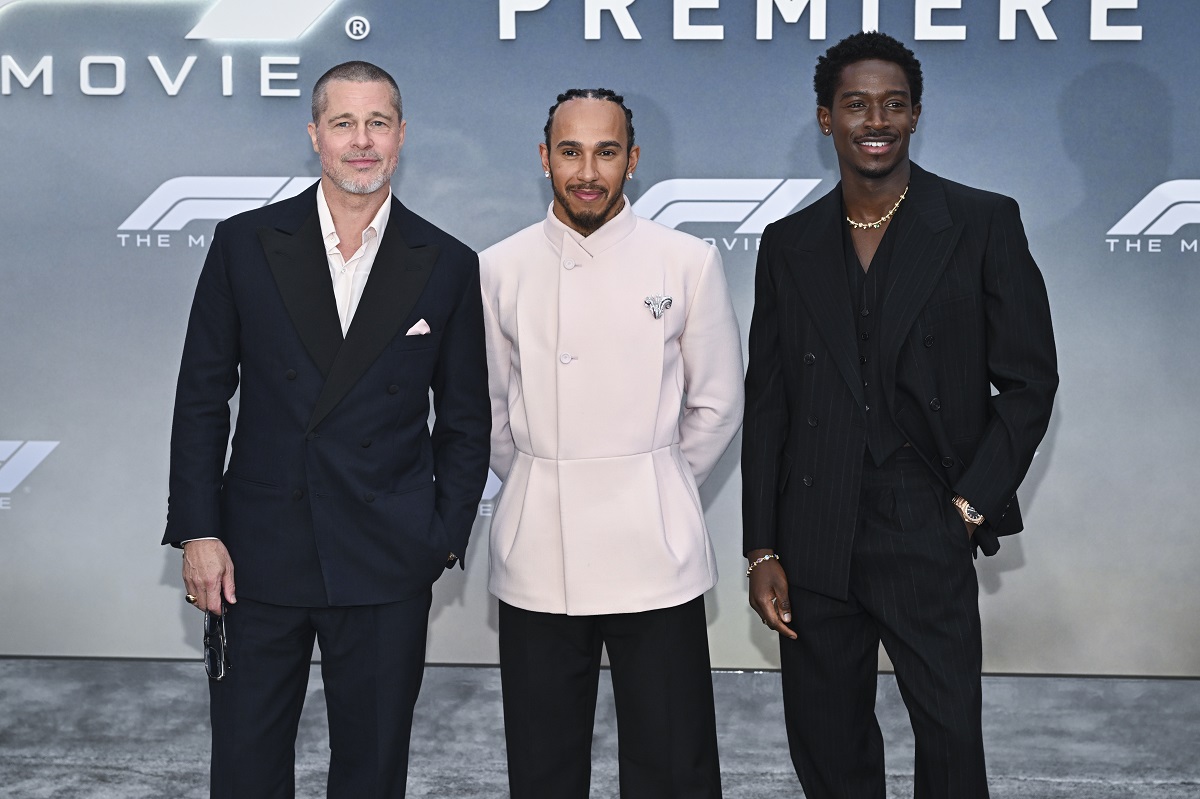 Brad Pitt, Lewis Hamilton, Damson Idris (Photo by Evan Agostini/Invision/AP)