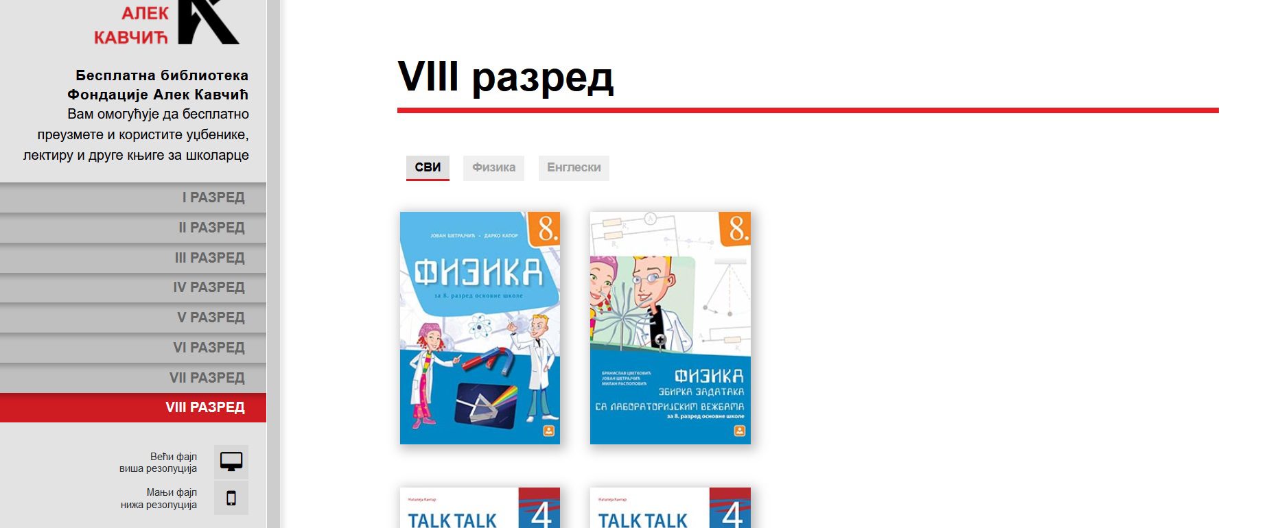 Fondacija Alek Kavčić saopštila je da su od danas dostupni novi udžbenici za sedmi i osmi razred.