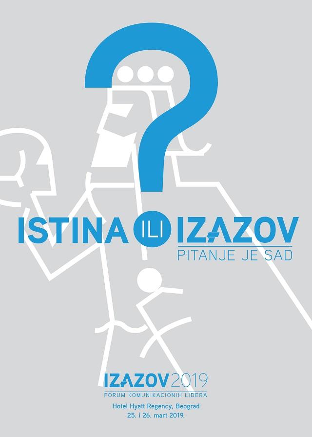 Jubilarni, peti po redu, regionalni forum komunikacionih lidera – IZAZOV 2019 biće održan 25. i 26. marta u hotelu „Hyatt Regency“ u Beogradu, pod sloganom „Istina ili izazov“. Reč je o interaktivnom poslovnom događaju, prvom ovog tipa u regionu, namenjenom isključivo profesionalcima iz oblasti marketinga, odnosa s javnošću i digitalnih komunikacija iz kompanija i agencija.