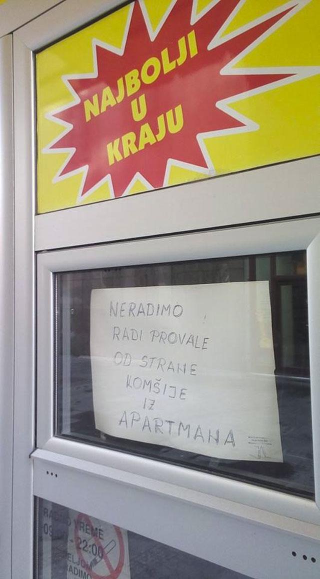 Fotografija sa oštrom porukom upućenom komšiji zabeležena je u centru Beograda u Čika Ljubinoj ulici.