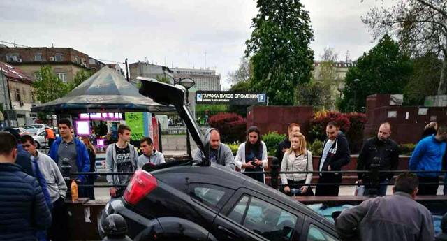 Kod Vukovog spomenika u centru Beograda nevakidašnji prizor – na stepeništu koje vode ka podzemnoj stanici „parkirao“ se crni Dodge Caliber.