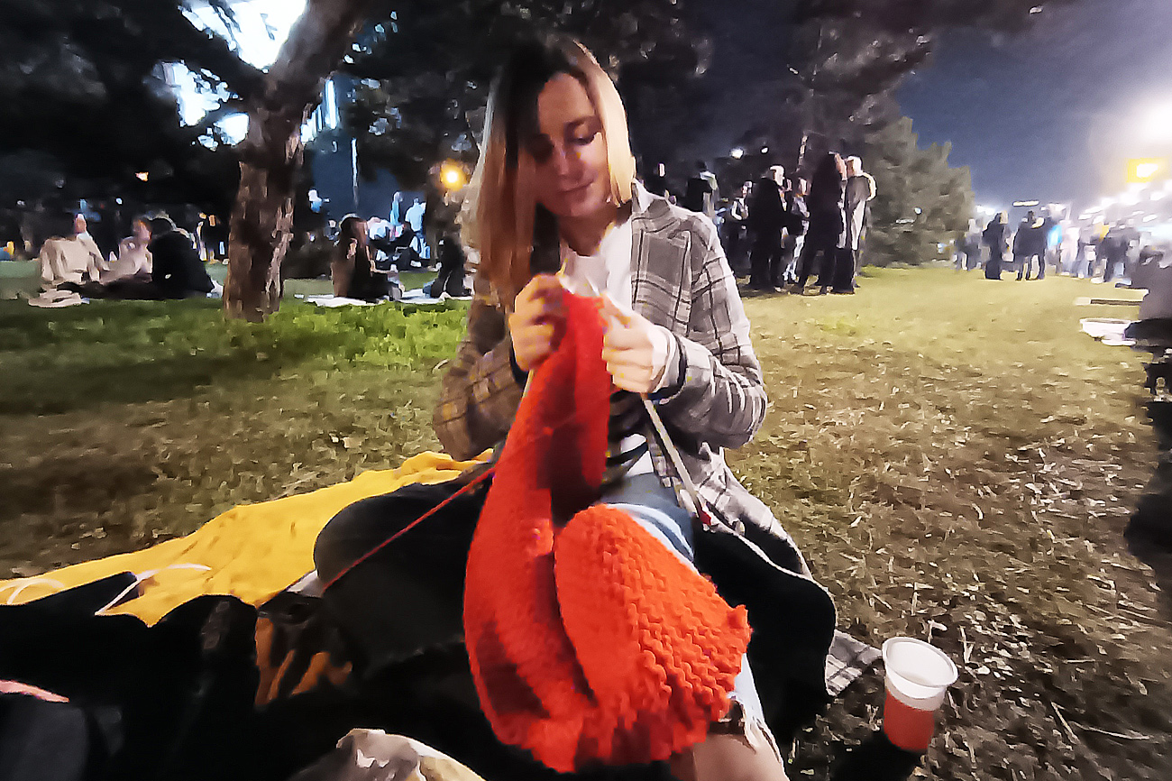 Kaže da nije imala nikakav poseban motiv da plete usred blokade. „Naučila sam nedavno, sviđa mi se i odlučila sam da pletem večeras“, rekla je ova mlada studentkinja.