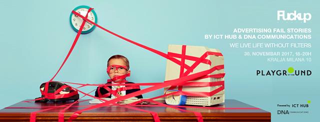 Agencija za integrisane marketinške komunikacije DNA Communications i Centar za razvoj tehnološkog preduzetništva i inovacije ICT Hub, organizovaće po prvi put u Srbiji događaj iz FuckUp Nights edicije, koji će biti posvećen pričama iz advertajzing industrije. U četvrtak od 18 časova u Playground centru za inovacije ICT Hub-a, prisutni će imati jedinstvenu priliku da čuju priče o ličnim i agencijskim neuspesima, bez ulepšavanja i filtera, direktno od uspešnih profesionalaca ove branše.