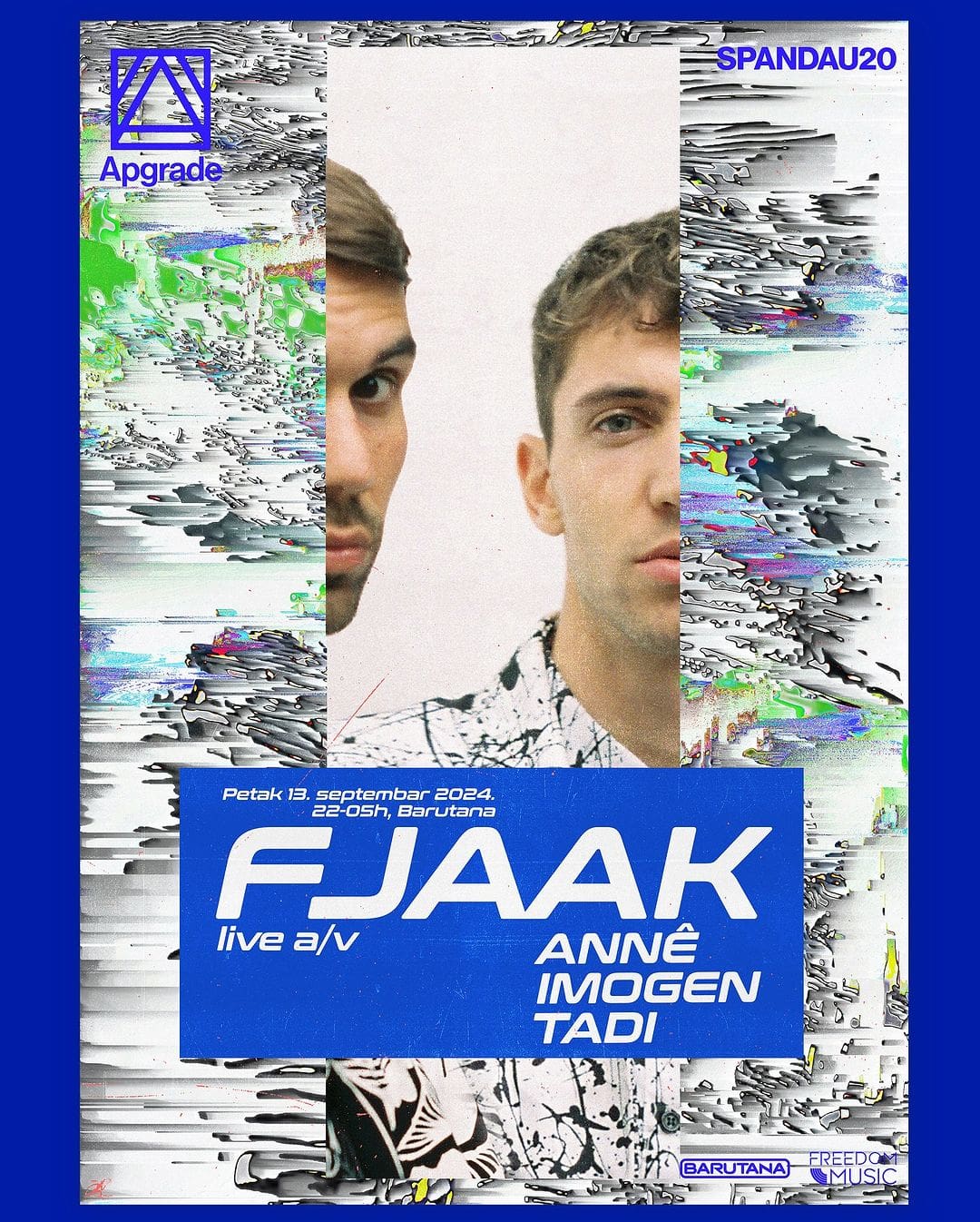 Nemačka tehno senzacija FJAAK vraća se u Beograd sa albumom ‘FJAAK THE SYSTEM’ – impresivnom kolekcijom uzbudljivog i beskompromisnog analognog tehna. Tokom godina rada na ovom izdanju, harizmatični berlinski duo razvijao je i novi live show obogaćen specijalnim vizuelnim sadržajem!