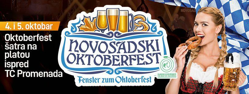 Novosadski Oktoberfest održaće se ove godine 4.i 5.. oktobra u pravoj bavarskoj atmosferi u velikom pivskom šatoru ispred TC Promenada u Novom Sadu. U više od 100 vrsta piva, mnogo vrsta kobasica, leberkezu i perecama moći ćete da uživate uz neke od najboljih muzičara sa ovih prostora. Ove godine sa bine “Novosadskog Oktoberfesta” prašiće EKV tribute, Pero Deformero, Ortodox Celts, BandX AC/DC Tribute i Goblini.