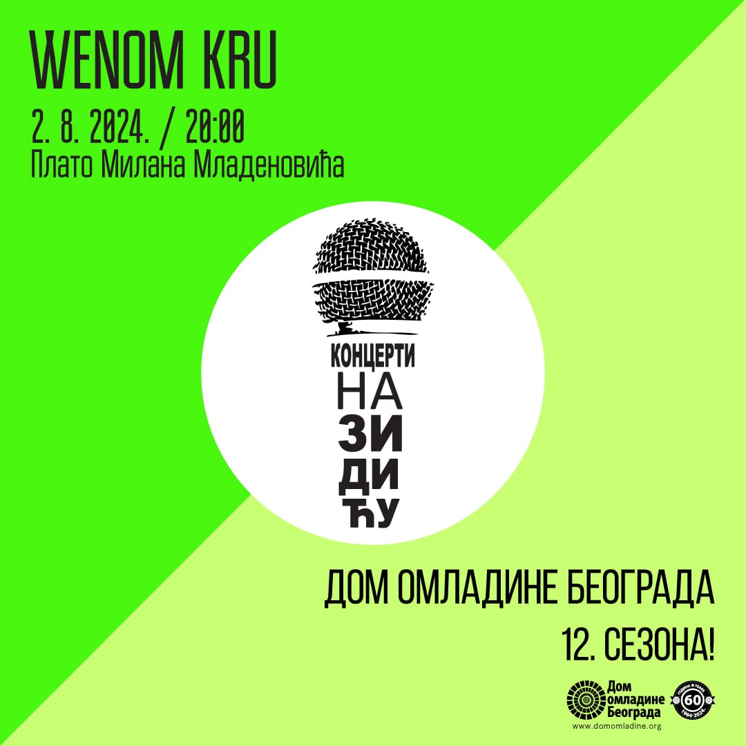 Wenom Kru je nastao 2005. godine kao projekat metal muzičara Luke Matkovića Citadele (Quasarborn, ex-Space Eater, Bombarder, Citadela Sound Production). Tokom godina, izgradili su autentičan, apstraktan, humoristički stil pod uticajem njujojške škole hip-hopa – Wu-Tang Clan-a i Onyx-a. Uživo nastupaju uz živ bubanj i bas gitaru za koje su zaduženi Nemzi i Maš. Inž. Paja Kocka. U ovoj postavi su imali prilike da se prvi put predstave publici kao predgrupa grupi Sunshine 14. februara ove godine, uz izuzetnu reakciju publike. Nastupaju u petak, 2. avgusta, u 20 sati.